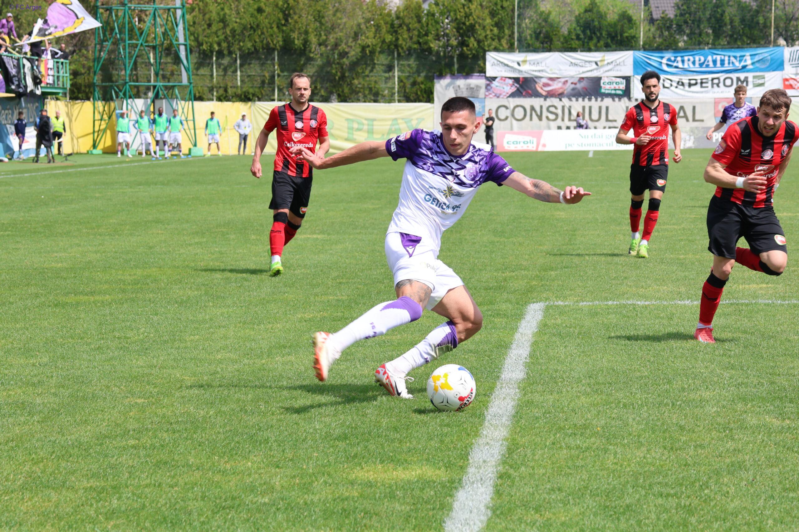 [vc_row][vc_column][vc_column_text]FC Argeș a învins-o pe Csikszereda Miercurea Ciuc cu 3-0, într-o partidă contând pentru etapa a cincea a Play-Off-ului din liga secundă. Argeșul a dominat partida de la Mioveni de la un capăt la celălalt.